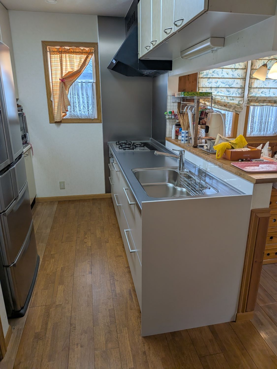 2025年11月4日 / 最終更新日 : 2025年11月4日 TsuchiyaKiyonobu S様邸 キッチン周り改修工事 建設地 埼玉県 施主名 S様邸 築年数 2001年建設(築24年時点) 改修前 改修後 相談内容 キッチン周りが古くなってきたので、床も含めて交換したい 工事内容 キッチン下台撤去、床フローリング張り替え、キッチン換気扇清掃、キッチン新設(2025年10月改修) お客様の声 キッチンを新しくし、床も明るくなり、大変気持ちよく生活しています。 FacebookXBluesky